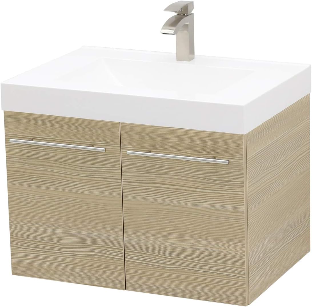 One-Day Sale: Up to 50% Off WindBay Wall Mount Floating Bathroom Vanity Sink Set. Tan Vanity, White Integrated Sink Countertop - 29.25